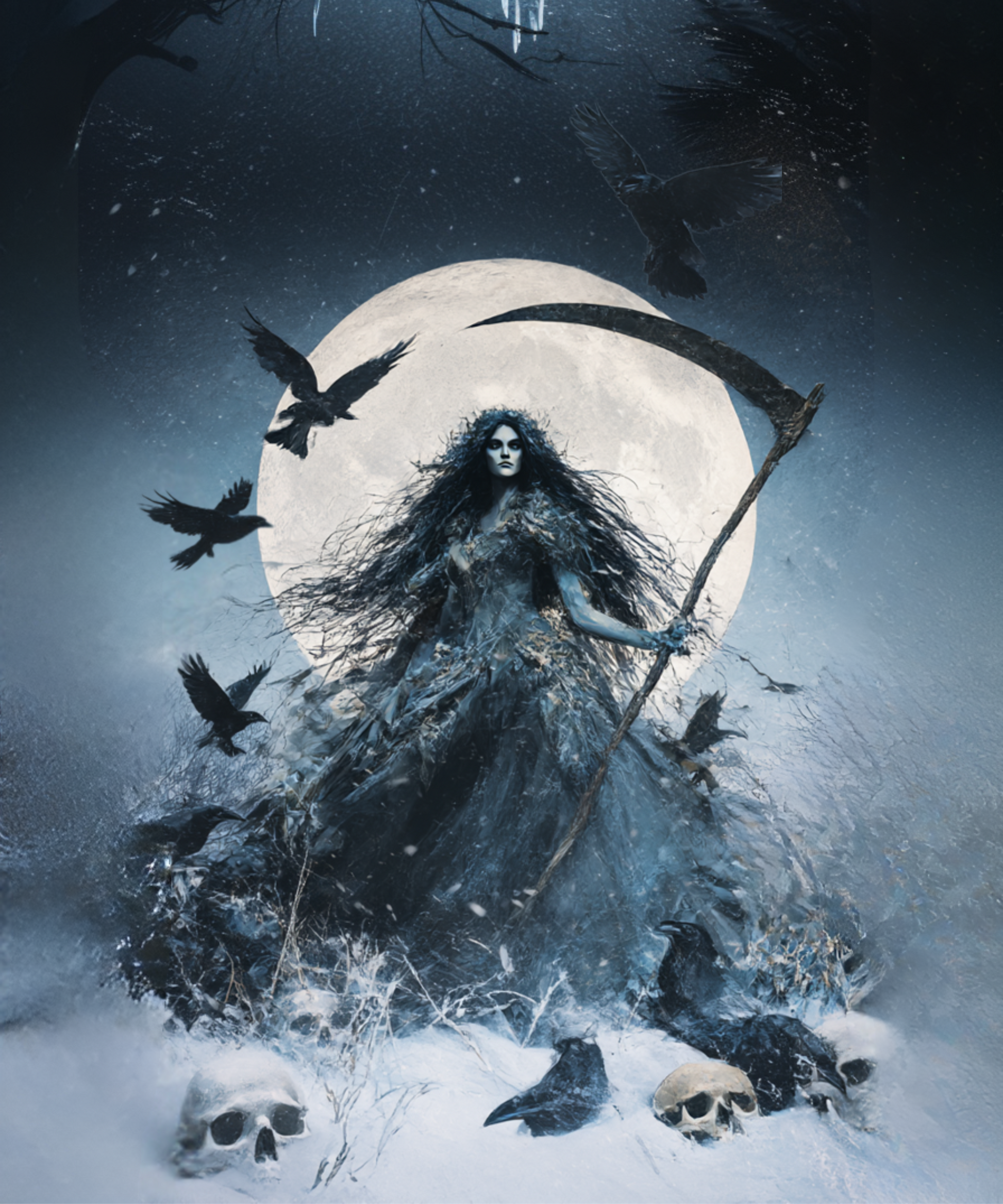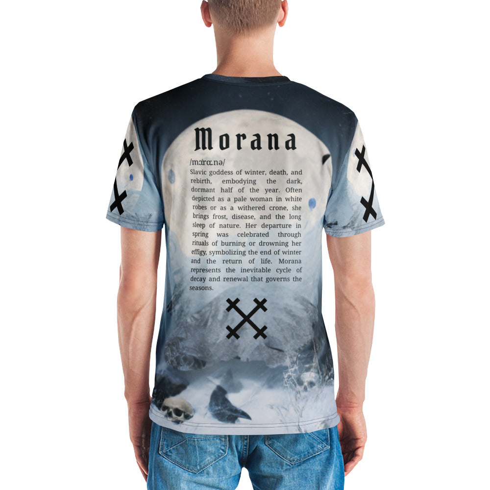 Morana Slavic Goddess T-Shirt – Men’s All-Over Print Mythology Tee with Bestiary Back Design