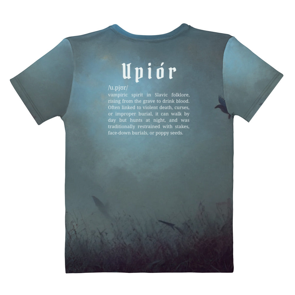 Upiór Slavic Creature Women’s T-Shirt – All-Over Print Mythology Tee with Bestiary Back Design